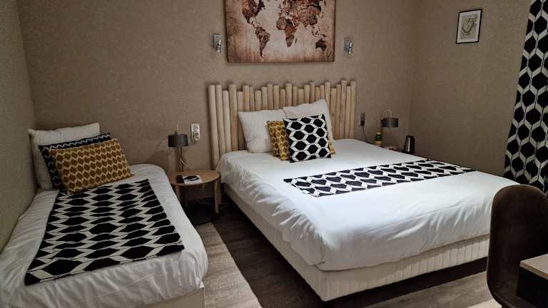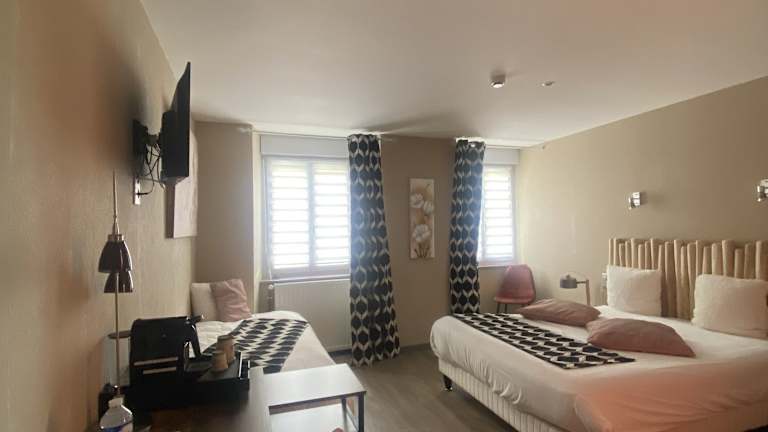 Die Zimmer sind mit modernen Annehmlichkeiten wie Heizung, TV- Gerät, Telefon und kostenlosem Wifi ausgestattet. Sie bieten Doppel- oder Queensize-Betten sowie Sofabetten. Einige Zimmer bieten einen Blick auf den Fluss Dordogne. Die Badezimmer verfügen über eine Dusche und Badewanne. Rollstuhlgerechte Zimmer sind ebenfalls verfügbar.