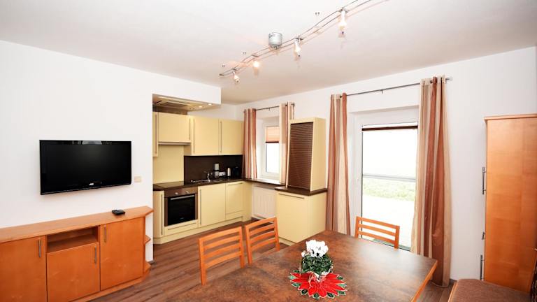 Die Ferienwohnung besteht aus 2 Schlafzimmern, einem Wohnzimmer, einer voll ausgestatteten Küchenzeile mit einem Kühlschrank und einer Kaffeemaschine sowie 1 Badezimmer mit einer Dusche und einem Haartrockner. Handtücher und Bettwäsche werden zur Verfügung gestellt.