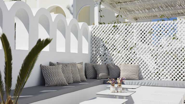 Die malerische Stadt Fira liegt nur wenige Gehminuten entfernt. In der Umgebung finden Gäste bezaubernde Cafés, zahlreiche Restaurants, Kunstgalerien und kleine Geschäfte. Auch ein Supermarkt, eine Bushaltestelle, Taxihaltestelle, Banken, Museen, eine örtliche Buchhandlung und das Postamt sind in der Nähe.