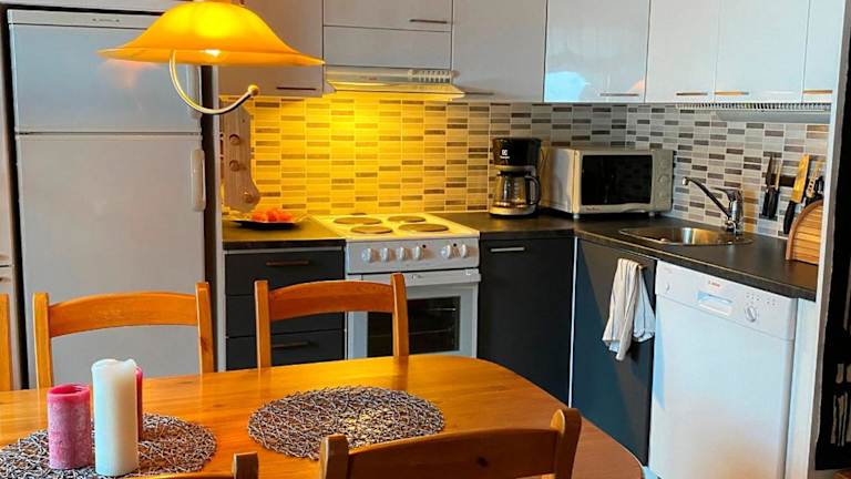 Die Ferienwohnung verfügt über 2 Schlafzimmer, ein Wohnzimmer und eine voll ausgestattete Küche, die mit einem Kühlschrank und einer Kaffeemaschine ausgestattet ist. Ein Badezimmer mit Dusche und Haartrockner ist ebenfalls vorhanden. Zusätzliche Bequemlichkeit bieten Handtücher und Bettwäsche, die gegen Aufpreis bereitgestellt werden können. Zudem steht eine Sauna zur Verfügung.