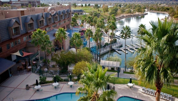Das London Bridge Resort in Lake Havasu City, Arizona, bietet seinen Gästen einen unvergesslichen Aufenthalt in einer malerischen Lage am See. Mit einem 9-Loch-Golfplatz, einem Splash-Pool mit Wasserrutsche und geräumigen Suiten mit Kitchenette erfüllt das Resort alle Wünsche der Gäste. Der hoteleigene Yachthafen und die Bootsvermietung bieten zahlreiche Wassersportmöglichkeiten. Entspannen Sie in den Außenpools, trainieren Sie im Fitnessstudio oder lassen Sie sich im Spa verwöhnen. Das Resort bietet außerdem zwei Restaurants, darunter das Martini Bay Restaurant mit Blick auf die London Bridge, und die Kokomo Pool Bar und den Nachtclub. Das London Bridge Resort ist der ideale Ausgangspunkt, um die Schönheit des Lake Havasu State Parks und der London Bridge zu erkunden.