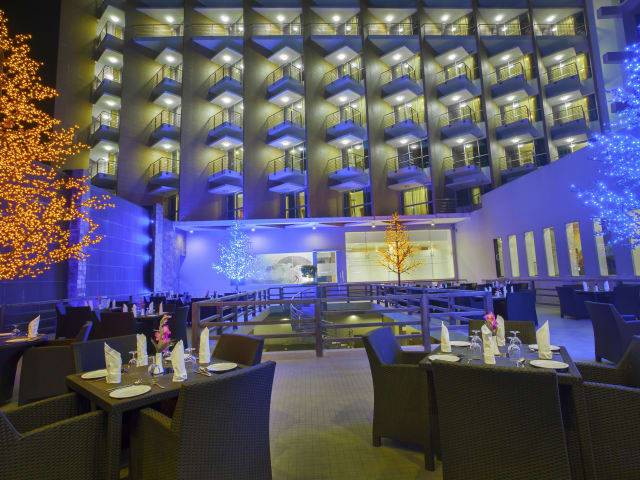 Das gemütliche Restaurant serviert internationale Köstlichkeiten. Die Poolbar, Sunset Grill, bietet Grillgerichte und erfrischende Getränke an. Zimmerservice steht rund um die Uhr zur Verfügung, zudem sind spezielle Speisen für Ernährungseinschränkungen auf Anfrage erhältlich.