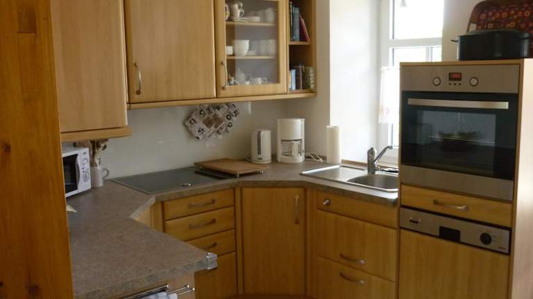 Die Ferienwohnung umfasst 2 Schlafzimmer, ein Wohnzimmer mit Flachbild-TV, eine gut ausgestattete Küche mit Kühlschrank und Geschirrspüler sowie ein Badezimmer mit Dusche. Handtücher und Bettwäsche sind ebenfalls verfügbar.