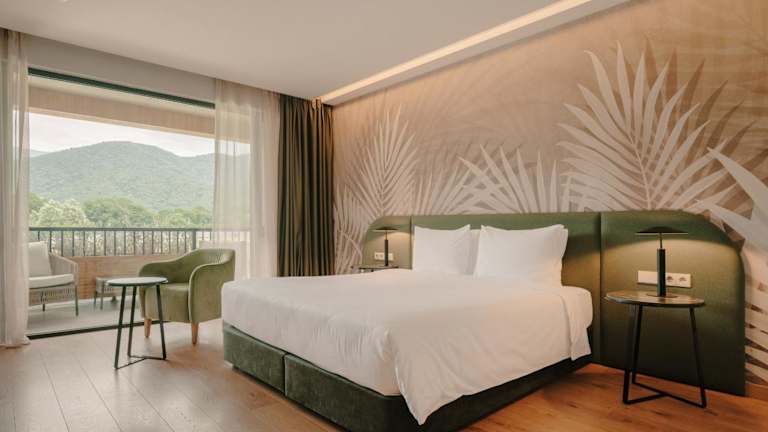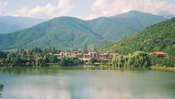 Das Lopota Lake Resort & Spa liegt in Kvareli, umgeben von der malerischen Berglandschaft des Kaukasus. Der nächste Flughafen ist Tbilisi (TBS), das Resort ist 2 Autostunden von der Hauptstadt entfernt und bietet eine ruhige Lage direkt am Ufer des Sees.