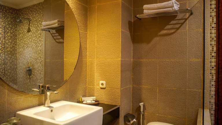 Die Unterkunft bietet verschiedene gastronomische Einrichtungen, darunter ein Restaurant, ein Café und eine Bar. Ein herzhaftes Frühstück wird als Buffet oder halal-zubereitet serviert.