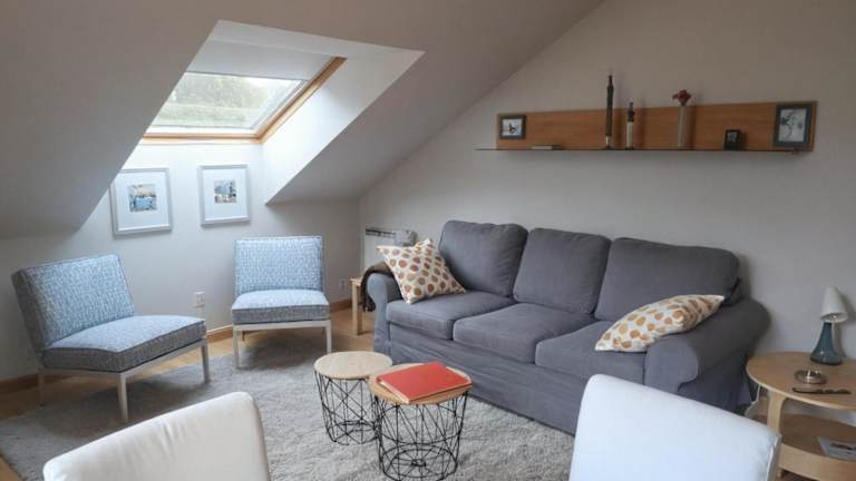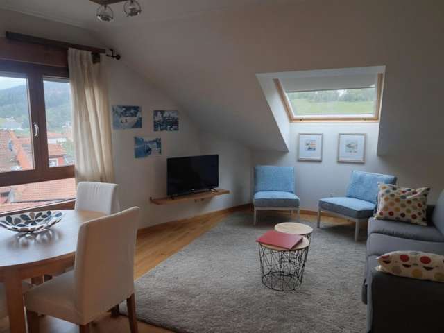 Die Ferienwohnung verfügt über ein Schlafzimmer, ein Wohnzimmer sowie eine voll ausgestattete Küche mit Kühlschrank und Kaffeemaschine. Das Badezimmer ist mit einer Badewanne oder Dusche sowie einem Haartrockner ausgestattet. Handtücher und Bettwäsche werden bereitgestellt.