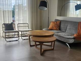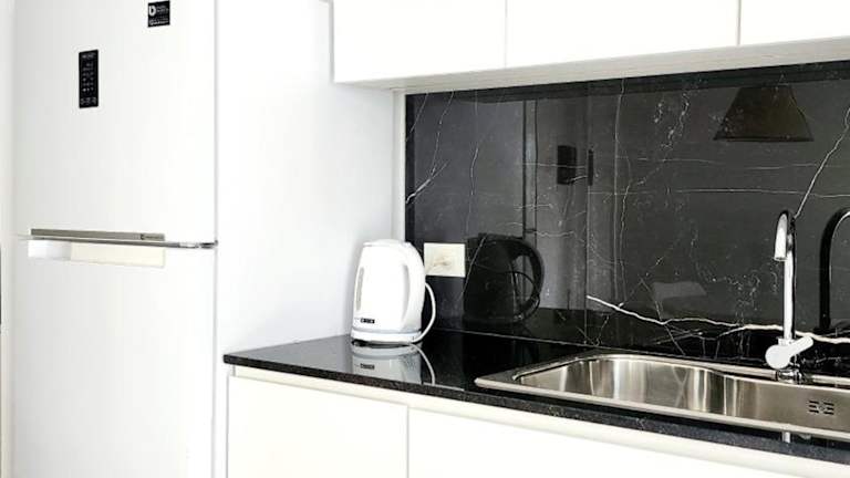 Die Ferienwohnung bietet zwei Schlafzimmer, ein Wohnzimmer, zwei Badezimmer mit einem Bidet sowie eine gut ausgestattete Küche mit Kühlschrank und Ofen. Handtücher und Bettwäsche werden bereitgestellt.