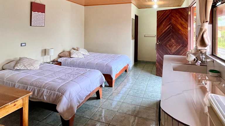 Die Unterkunft Los Tucanes Lodging befindet sich in El Castillo de La Fortuna, 25 Kilometer vom Wasserfall La Fortuna entfernt. In der Nähe sind zahlreiche Attraktionen wie Sky Adventures Arenal, Hängebrückenpark Mistico Arenal und Kalambu Hot Springs. Der nächstgelegene Flughafen ist der Flughafen Fortuna, der 32 Kilometer entfernt liegt. Es wird empfohlen, mit dem Auto anzureisen.