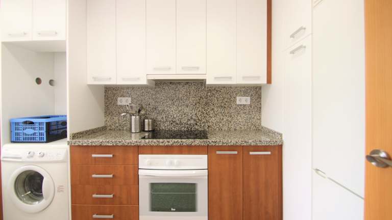 Die Ferienwohnung ist klimasaniert und besteht aus zwei Schlafzimmern, einem Wohnzimmer sowie einer voll ausgestatteten Küche, die unter anderem über einen Kühlschrank und eine Kaffeemaschine verfügt. Es stehen zwei Badezimmer mit Bidet und Dusche zur Verfügung. Handtücher und Bettwäsche werden angeboten.