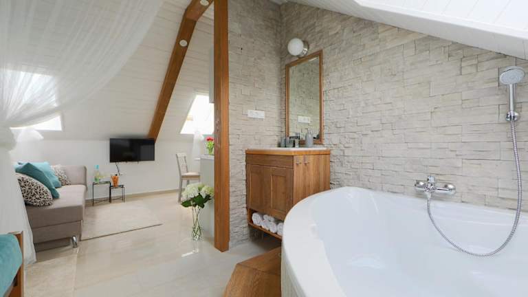 Die Lotti Residence Romantik überzeugt mit einer heimeligen Atmosphäre und einem Garten. Der Wellnessbereich umfasst eine Sauna und einen Whirlpool für entspannende Momente. Die Unterkunft stellt kostenloses Wifi zur Verfügung und bietet eine Terrasse zur Nutzung.