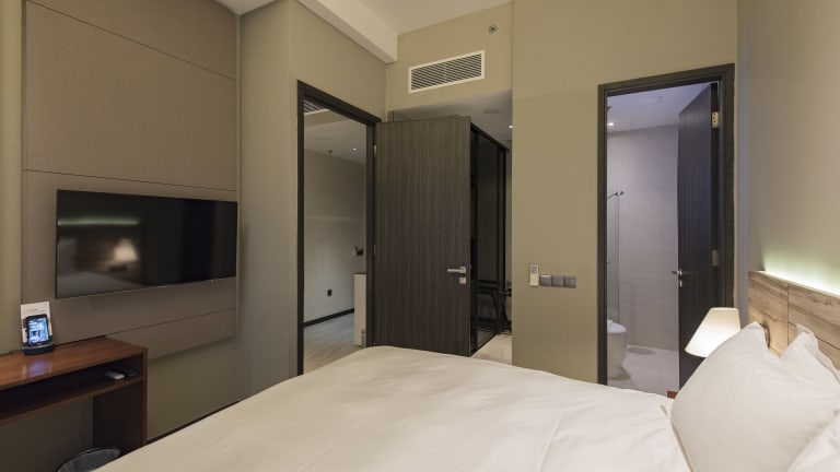 Die Zimmer sind mit einem Wohnbereich, einem Badezimmer und einer Klimaanlage ausgestattet. Es gibt separate Schlafzimmer, einen Schreibtisch und eine Kochnische mit Kühlschrank, Mikrowelle und Kaffeemaschine. Zur weiteren Ausstattung gehören ein Telefon, ein TV-Gerät mit Kabelempfang und kostenloses WLAN. Im Badezimmer finden Sie eine Dusche, eine Badewanne, einen Haartrockner und Bademäntel.