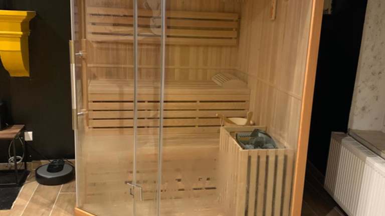 Der Wellnessbereich des Ferienhauses lädt zum Entspannen ein und verfügt über einen Whirlpool, in dem Sie sich verwöhnen lassen können.