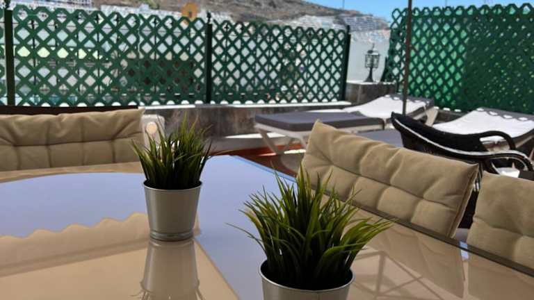 Lovely apartment 2 rooms with big terrace in Puerto Rico bietet Unterkünfte mit einem Außenpool, einem Garten und einer Terrasse. Die Ferienwohnung verfügt über kostenloses WLAN und bietet einen Blick auf die Stadt. Angenehme zusätzliche Annehmlichkeiten umfassen eine Veranda sowie einen Grill.