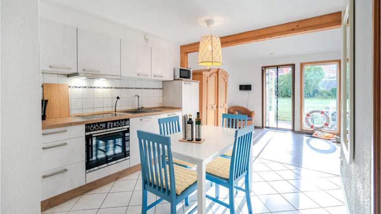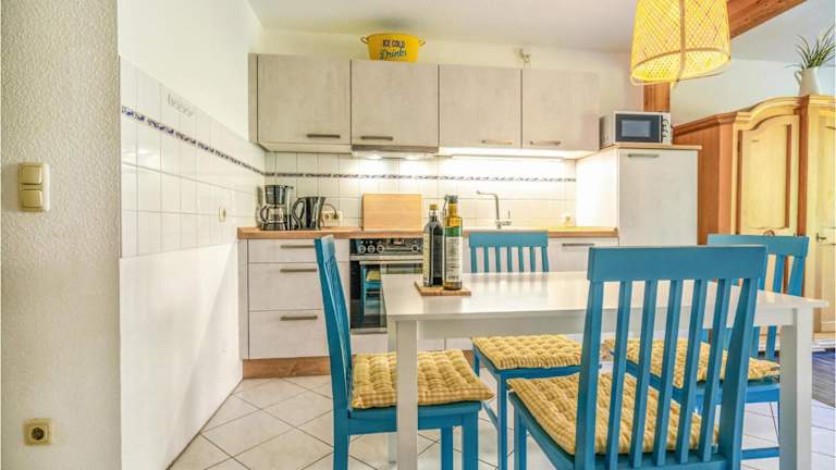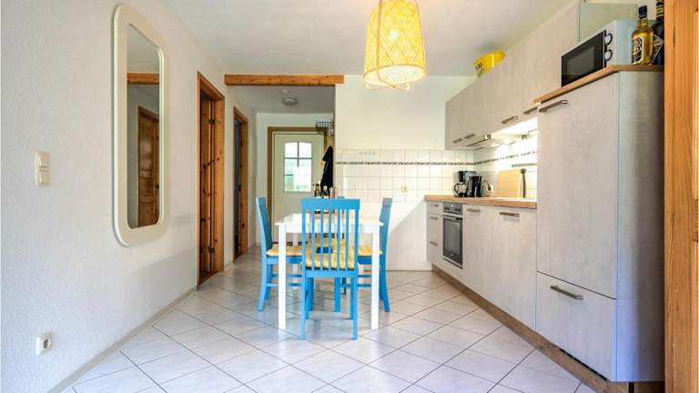 Die Ferienwohnung ist ausgestattet mit einer voll ausgestatteten Küche, die eine selbständige Zubereitung von Mahlzeiten ermöglicht. Weitere Verpflegungsmöglichkeiten sind in der Umgebung zu finden.