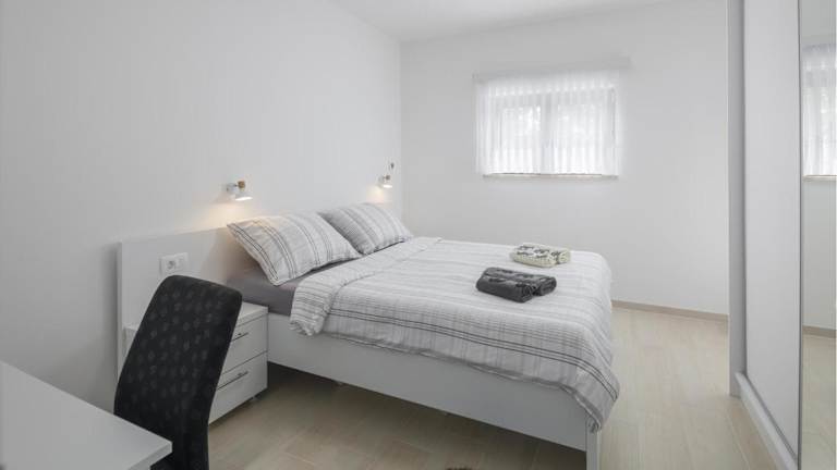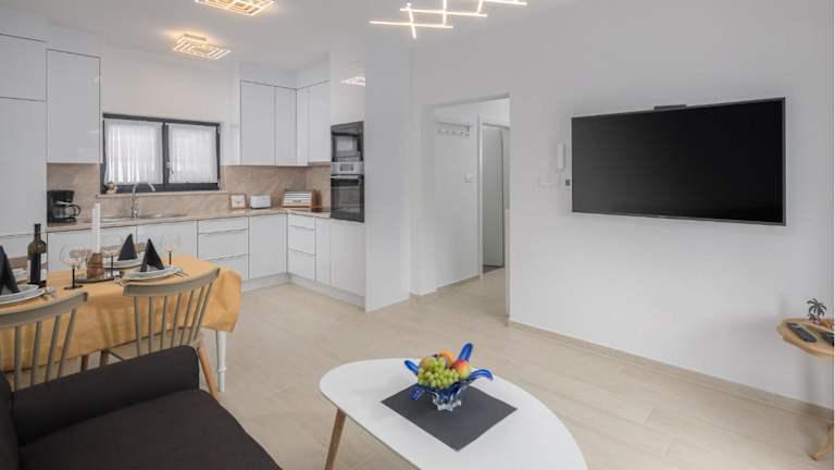 Die Ferienwohnung umfasst ein Schlafzimmer, ein Wohnzimmer und eine gut ausgestattete Küche. Die Ausstattung beinhaltet einen Fernseher sowie Klimaanlage und bietet eine komfortable Atmosphäre für Gäste. Es sind keine Informationen über spezifische Zimmereinrichtungen vorhanden.