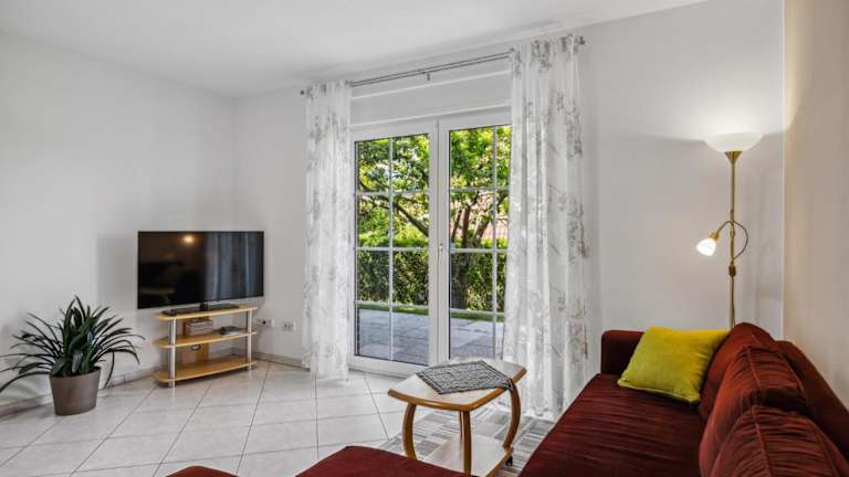 Die Ferienwohnung ist ausgestattet mit einem Schlafzimmer, einer gut ausgestatteten Küche mit Kühlschrank und Mikrowelle, einem Wohnzimmer und einem TV. Die Unterkunft ist eine Nichtraucherunterkunft, und Gartenmöbel stehen ebenfalls zur Verfügung.