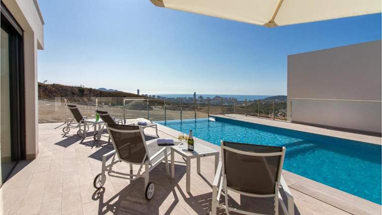 Finestrat, in der Nähe des Erlebnisparks Terra Natura und des Naturparks Acqua, in malerischer Umgebung mit Blick auf das Meer.