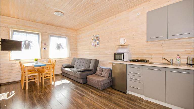 Die Unterkunft beinhaltet zwei Schlafzimmer sowie ein Wohnzimmer mit TV. Zudem ist eine voll ausgestattete Küche vorhanden, die den Gästen die Möglichkeit bietet, sich selbst zu versorgen.