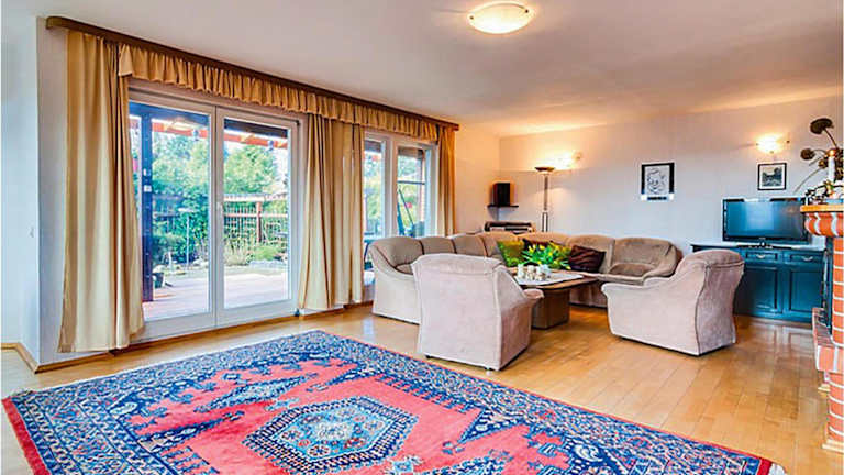 Das Ferienhaus besteht aus drei Schlafzimmern, einem Wohnzimmer sowie zwei Badezimmern, die jeweils mit einer Dusche und einer Badewanne ausgestattet sind. Die Küche ist mit einem Kühlschrank und einer Kaffeemaschine versehen.