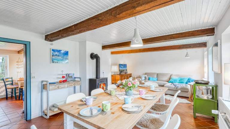 Das Ferienhaus besteht aus 3 Schlafzimmern, einem Wohnzimmer sowie einer voll ausgestatteten Küche mit Kühlschrank und Kaffeemaschine. Es gibt zwei Badezimmer, die jeweils über eine Dusche und eine Badewanne verfügen. Die Bequemlichkeit wird durch Internetzugang via WLAN in der gesamten Unterkunft gewährleistet.