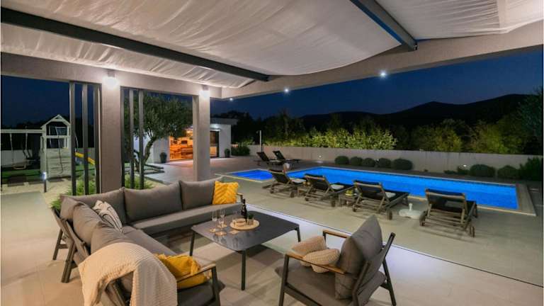 Stunning Home In Poljica With Jacuzzi bietet Übernachtungsmöglichkeiten in einem Ferienhaus mit eigenem Pool. Die Unterkunft verfügt über klimatisierte Räume und Annehmlichkeiten wie Sauna und Whirlpool.
