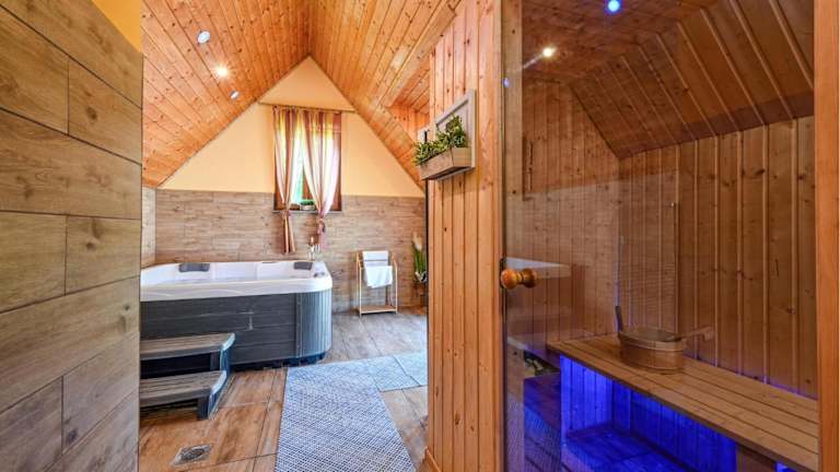 Die Unterkunft bietet einen Aussenpool, der den Gästen die Möglichkeit zum Schwimmen und Entspannen im Freien gibt. Weiterhin steht eine Sauna zur Verfügung, die zur Entspannung beiträgt.