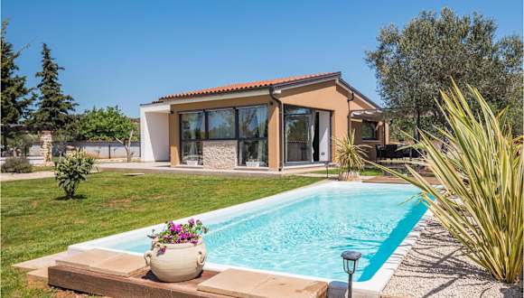 Das Ferienhaus ist klimatisiert und hat ein Schlafzimmer, ein TV sowie eine Küche, die mit einem Kühlschrank und einem Geschirrspüler ausgestattet ist. Es bietet zudem einen Whirlpool und einen Aussenpool für die Bequemlichkeit der Gäste.
