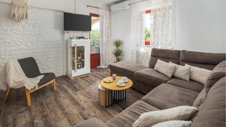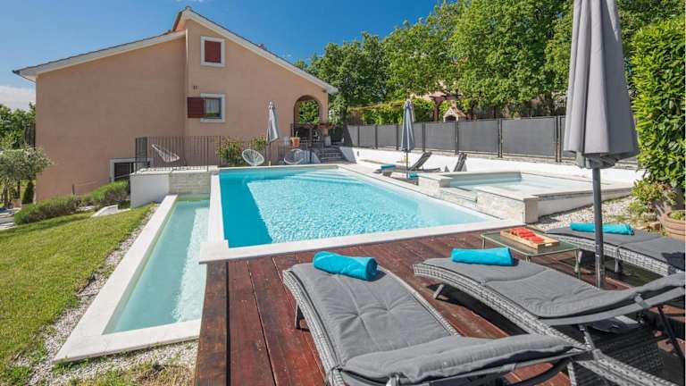 Das Ferienhaus Lovely Home In Tinjan bietet Übernachtungsmöglichkeiten in einem heimeligen Ambiente mit eigenem Pool. Ausgestattet mit Klimaanlage und modernem Wohnkomfort, erstreckt sich die Unterkunft über 4 Schlafzimmer, ein Wohnzimmer sowie eine voll ausgestattete Küche. Die Unterkunft bietet einen kostenlosen Privatparkplatz und kostenloses Wifi in allen Bereichen. Es handelt sich um eine Nichtraucherunterkunft, sowohl in öffentlichen als auch in privaten Bereichen.