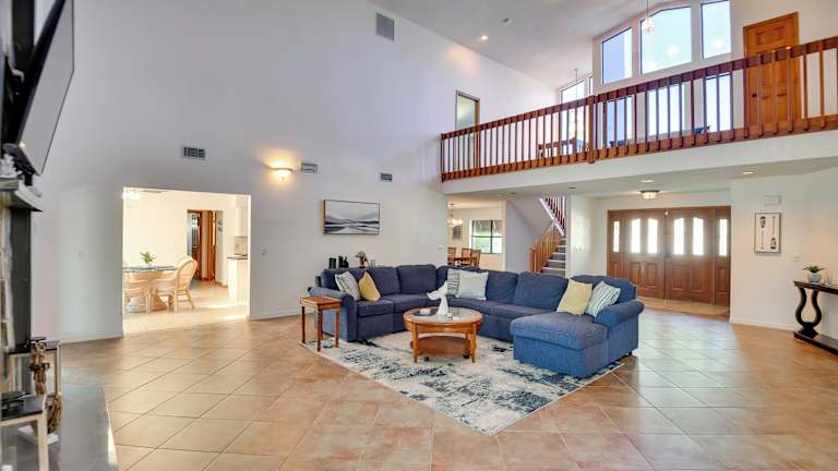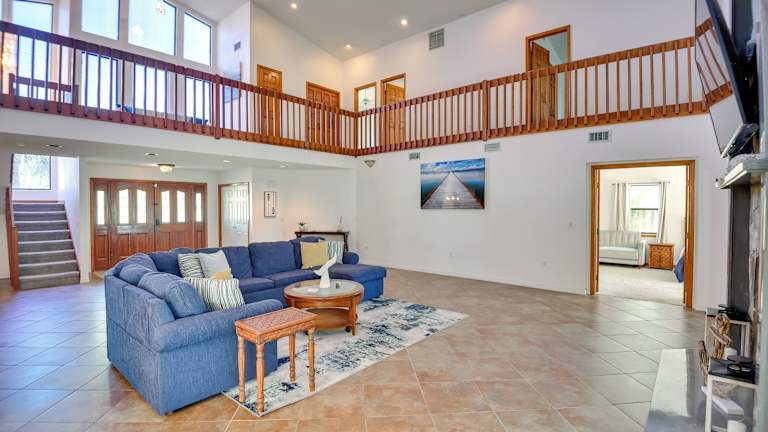 Das Lovely Palm Coast Retreat bietet eine heimelige Unterkunft mit kostenlosem Wifi und Klimaanlage. Es handelt sich um ein Ferienhaus im Erdgeschoss mit 5 Schlafzimmern. Die Unterkunft ermöglicht Gästen eine entspannte Zeit in einem grosszügigen Raum, der mit einem Wohnzimmer und einem TV ausgestattet ist.