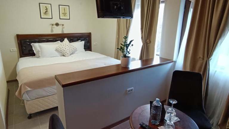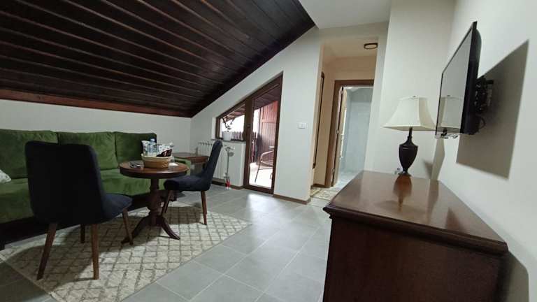 Das Hotel Loven dom Berovo in Berovo ist der perfekte Ort für einen erholsamen Aufenthalt inmitten der Natur. Mit kostenfreien Fahrrädern, einem schönen Garten und einer Terrasse bietet das Hotel eine ideale Umgebung, um die Schönheit der Umgebung zu erkunden und sich zu entspannen. Genießen Sie auch das hoteleigene Restaurant und die Bar, die Ihnen erfrischende Getränke und köstliche Speisen servieren. Die Zimmer sind komfortabel eingerichtet und verfügen über einen Balkon mit herrlichem Bergblick. Starten Sie Ihren Tag mit einem leckeren kontinentalen Frühstück und erkunden Sie anschließend die Umgebung von Berovo, zum Beispiel beim Fahrradfahren.