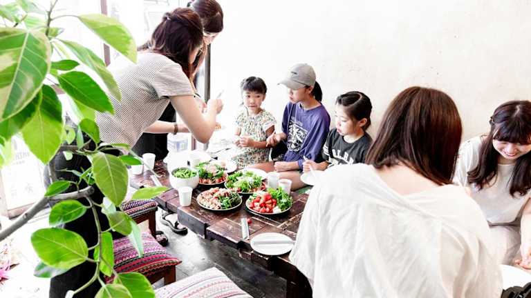 Die Unterkunft bietet eine Gemeinschaftsküche, die für die Zubereitung eigener Mahlzeiten genutzt werden kann. Zudem besteht die Möglichkeit, Essen in die Unterkunft liefern zu lassen. Thema-Dinnerabende und Kochkurse werden ausserhalb der Unterkunft angeboten.