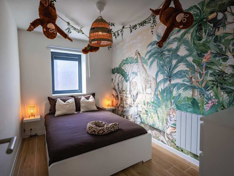 Loxodonta Lodge - Gîte 4 pers proche de Pairi Daiza ist ein Ferienhaus, das eine Gemeinschaftslounge und eine Terrasse bietet. Die Unterbringung wird privat verwaltet und es werden keine Feierlichkeiten wie Junggesellenabschiede gestattet.