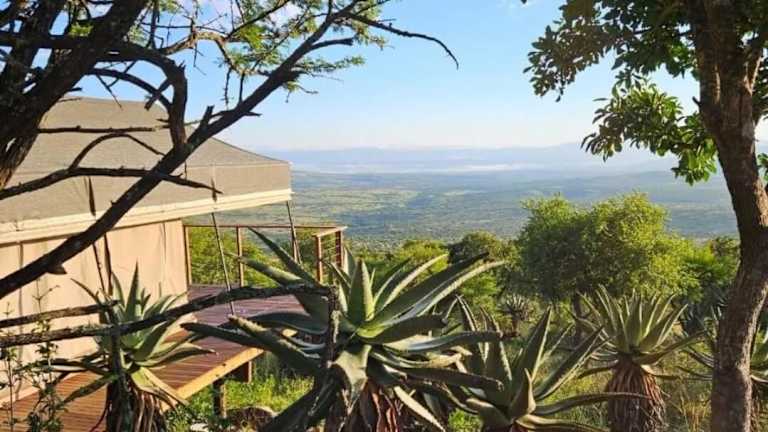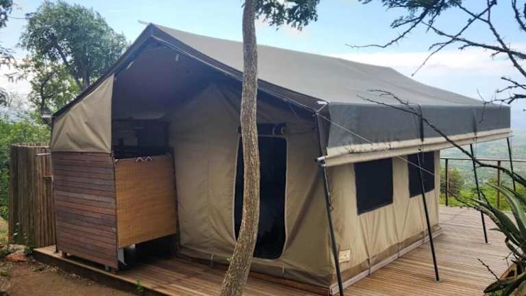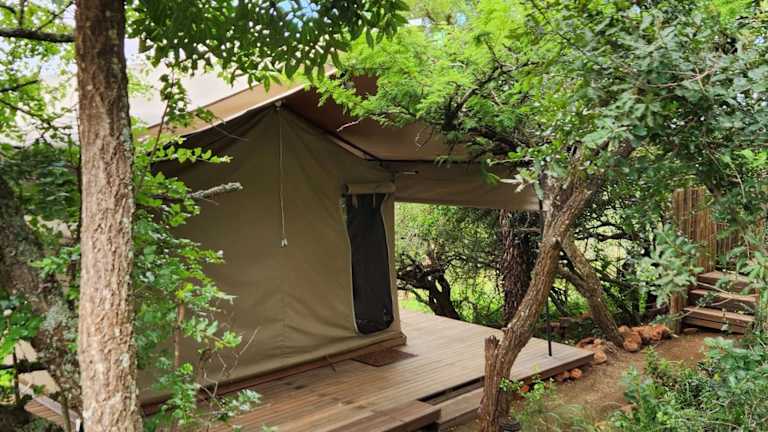 Die Unterkunft Loziba Wildlife Reserve Tented Camp ist gelegen in Vryheid, umgeben von einer naturnahen Umgebung mit einem Garten und einer Terrasse.