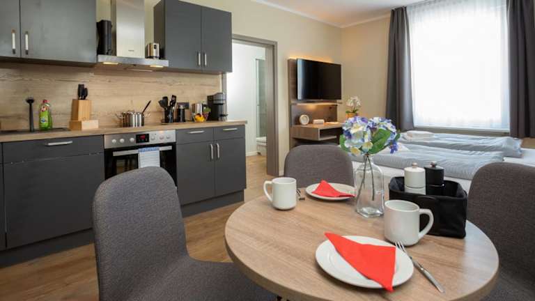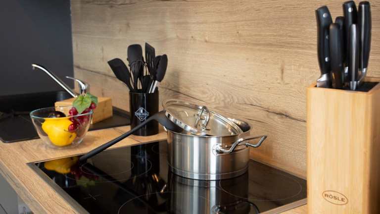 In der voll ausgestatteten Küche der Ferienwohnung können Gäste ihre Mahlzeiten zubereiten. Es sind keine spezifischen Informationen zu Verpflegungsmöglichkeiten vorhanden.