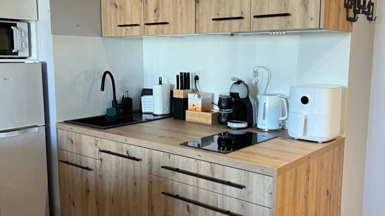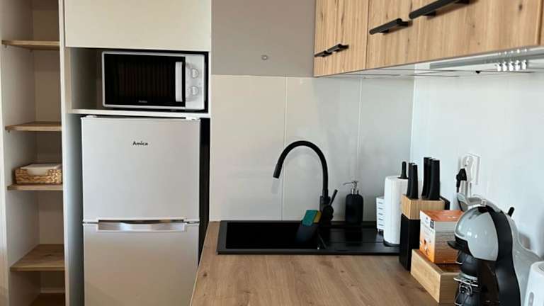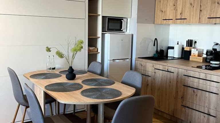 Die Ferienwohnung mit Klimaanlage besteht aus 1 Schlafzimmer, einem Wohnzimmer und einer voll ausgestatteten Küche mit Kühlschrank und Kaffeemaschine. Es stehen zudem 2 Badezimmer mit Dusche und kostenlosen Pflegeprodukten zur Verfügung. Handtücher und Bettwäsche werden bereitgestellt.