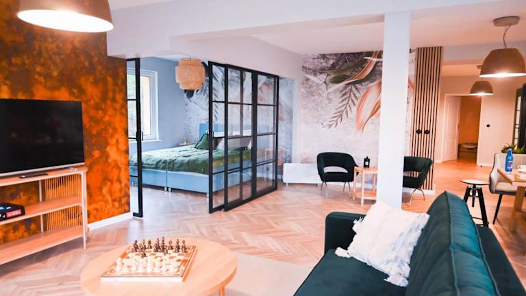 Das Lubiński Resort verfügt über Übernachtungsmöglichkeiten mit einem Garten, einem kostenlosen Privatparkplatz und einer Terrasse. Die Unterkunft bietet zudem eine Sauna sowie eine Gemeinschaftsküche.