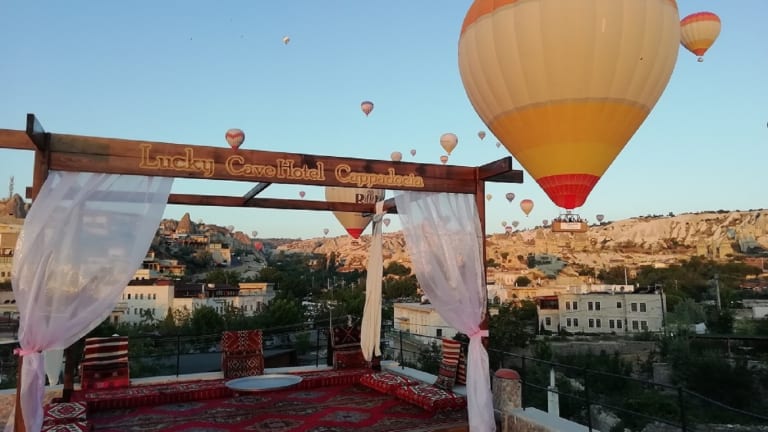 At the center of Goreme, you have made an excellent choice to start your day with hot air balloons dance at your leisure with perfect organic breakfast view of Uchisar Castle and Love Valley. You will admire the comfort of 9 stone rooms and suites in Cappadocia architecture. With view of the valleys of Cappadocia and you will be able to watch a panoramic landscape where you will face a panoramic view where you will face where you will have unforgettable memories of your life. The hotel is located 100 meters from the center of Goreme , 3 km from Uchisar Town and 1 km from Goreme Open Air Museum. The distance to Nevsehir Airport is 40 km. If you prefer to travel by air to Cappadocia, the hotel's concierge team can arrange airport transfer service, which is a service that will facilitate your arrival from the airport to your hotel, in a private or group manner we can plan your trip under your name. Digiturk satellite service, Music player, Turndown service, Concierge Service, 24 hours breakfast service without time limit, Armacology bath toiletry welcomes you to the point of being maximum comfort. If you are here & you are lucky.