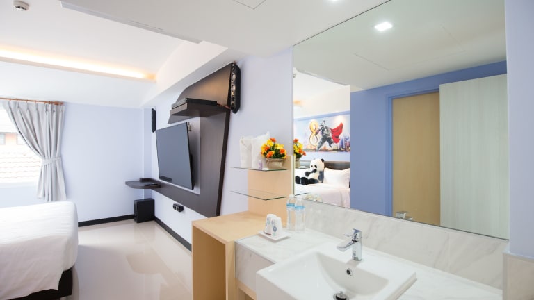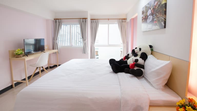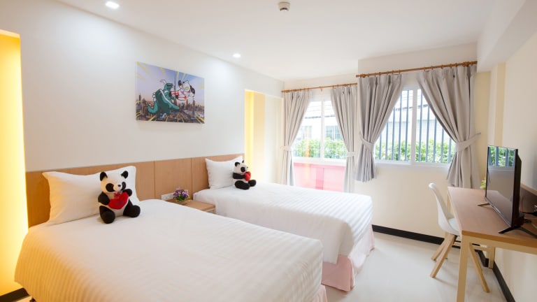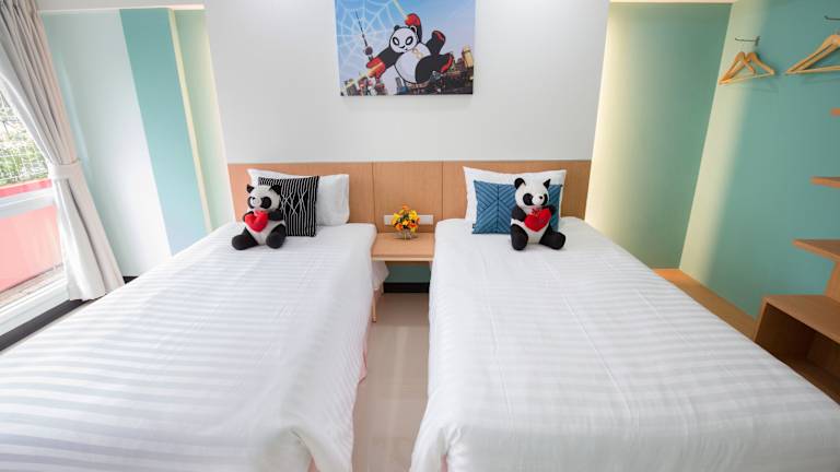 Die Zimmer im Lucky Panda Hotel erfreuen sich einer klimatisierten Ausstattung und verfügen über ein Kingsize-Bett sowie Zustellbetten auf Anfrage. Jedes Zimmer ist mit einem Sitzbereich, einem Flachbild-TV mit Kabelkanälen, einem Schreibtisch sowie einer Tee-/Kaffeemaschine ausgestattet. Die Badezimmer sind mit einer Dusche, einer Badewanne und kostenlosen Kosmetikartikeln sowie Handtüchern ausgestattet. Es stehen sowohl Familien- als auch Nichtraucherzimmer zur Verfügung.