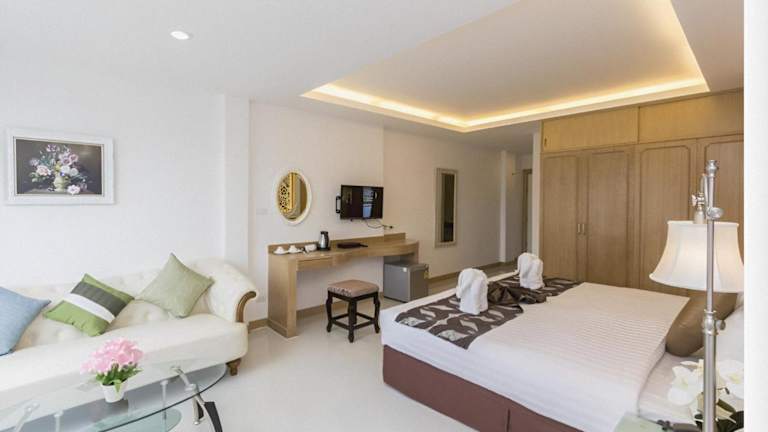 Die klimatisierten Zimmer in der Unterkunft Lucky Sun Patong sind mit einem Schreibtisch, einem Wasserkocher, einem Kühlschrank, einer Minibar und einem Safe ausgestattet. Jedes Zimmer bietet zudem einen Flachbild-TV sowie ein eigenes Badezimmer mit Dusche. Bettwäsche und Handtücher sind ebenfalls vorhanden.
