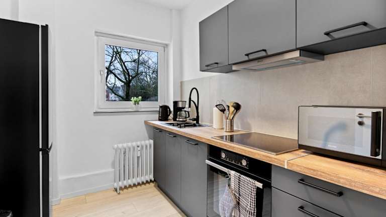 Das Lünen Living Apartment #12 verfügt über 3 Schlafzimmer, einen TV sowie eine gut ausgestattete Küche mit einem Kühlschrank und einem Geschirrspüler. Weiterhin gehört ein Badezimmer mit Dusche zur Ausstattung. Handtücher und Bettwäsche werden bereitgestellt.