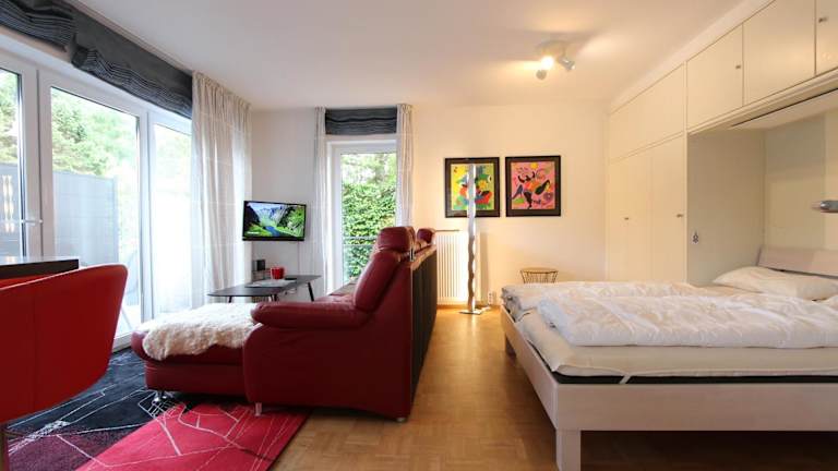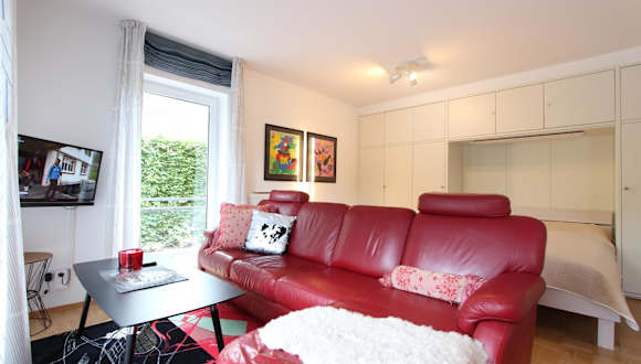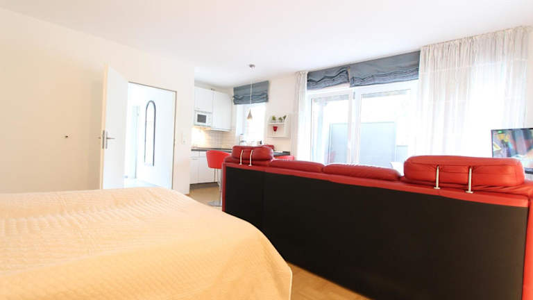 Die Ferienwohnung verfügt über 1 Schlafzimmer und ist ausgestattet mit einer gut eingerichteten Küche, die einen Kühlschrank und einen Geschirrspüler umfasst. Zusätzlich gibt es ein Wohnzimmer sowie einen Flachbild-TV.