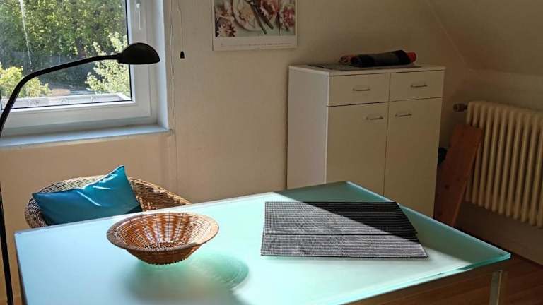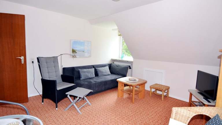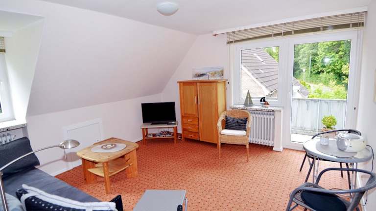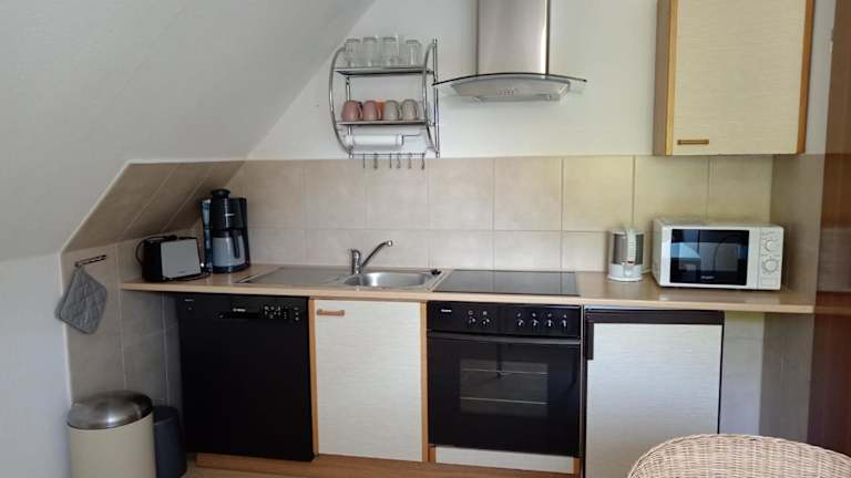 Die Ferienwohnung verfügt über ein Schlafzimmer, eine voll ausgestattete Küche mit Kühlschrank und Geschirrspüler, sowie ein Badezimmer mit Dusche und Haartrockner. Zudem sind ein TV und ein DVD-Player vorhanden.