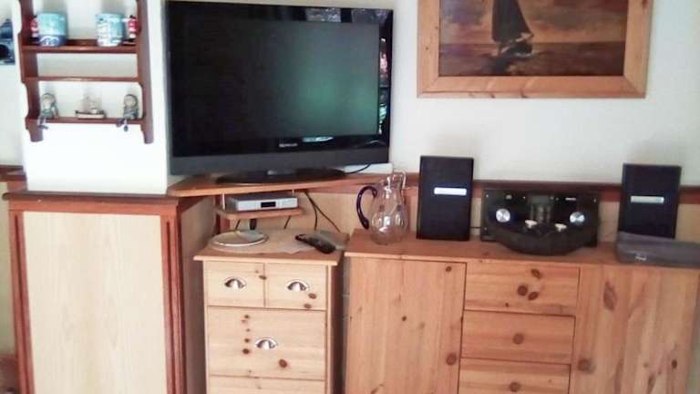 Das Ferienhaus umfasst 1 Schlafzimmer, ein Wohnzimmer und eine voll ausgestattete Küche mit Kühlschrank und Kaffeemaschine. Das Badezimmer ist mit einer Dusche und einem Haartrockner ausgestattet. Bettwäsche und Handtücher können gegen Aufpreis bereitgestellt werden.