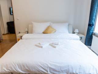 Die Wohnungen umfassen 3 Schlafzimmer, ein Wohnzimmer mit Flachbild-TV sowie eine gut ausgestattete Küche mit Kühlschrank und Ofen. Das Badezimmer ist mit einer Dusche ausgestattet. Handtücher und Bettwäsche werden bereitgestellt.
