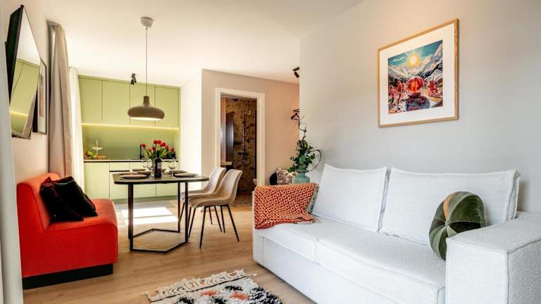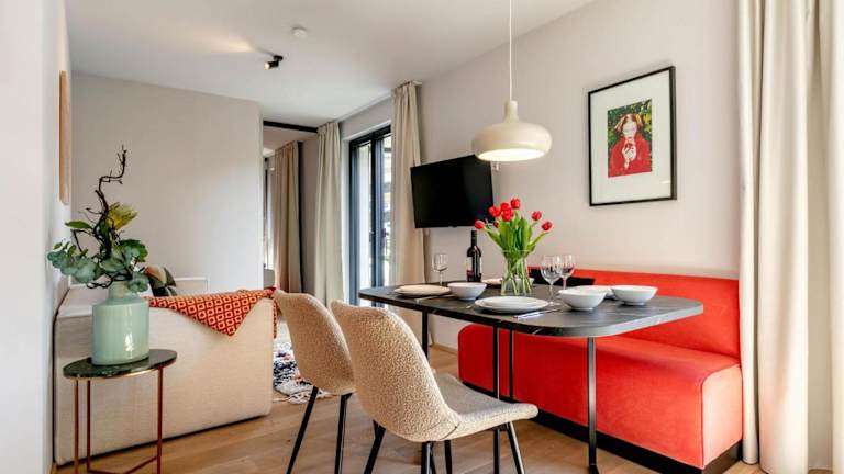 Die Ferienwohnung beinhaltet 1 Schlafzimmer, eine Küche mit Kühlschrank und Mikrowelle, einen TV und einen Sitzbereich. Das Badezimmer ist mit einer Dusche ausgestattet. Handtücher und Bettwäsche werden bereitgestellt.