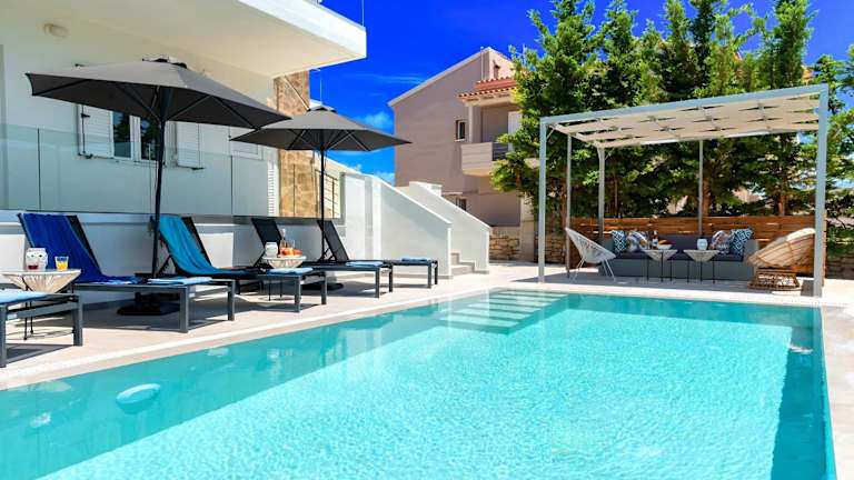 Die Luminosa Luxus Villa befindet sich im Bezirk Kavros, in der Nähe des Strands Peristeras. Die Umgebung bietet eine ruhige Atmosphäre und liegt relativ nahe zu kulturellen Sehenswürdigkeiten wie dem archäologischen Museum von Rethymno sowie der Antikenstätte Eleftherna.