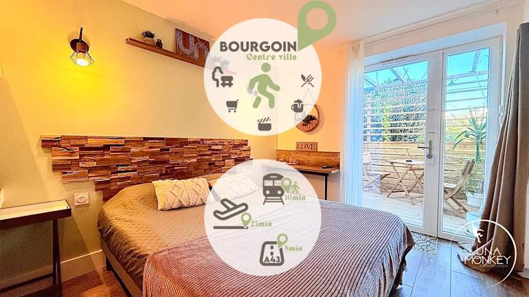 Die Unterkunft Luna Monkey, Chambre & Terrasse privée befindet sich in Bourgoin-Jallieu, weniger als 33 km vom Messegelände Eurexpo entfernt. Weitere Sehenswürdigkeiten in der Nähe sind das Groupama Stadium und die LDLC Arena, die beide rund 37 bis 38 km entfernt liegen. Die Anbindung an den öffentlichen Verkehr ist gut, da der Bahnhof Lyon-Part-Dieu in etwa 42 km erreichbar ist.