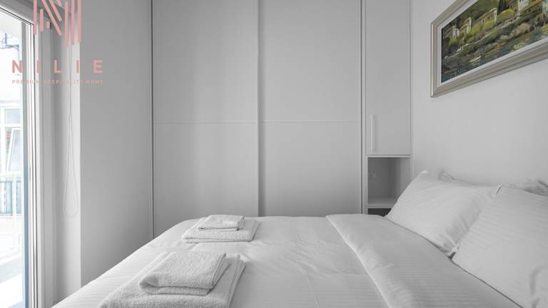 Lusso Bianco, Nilie Hospitality MGMT ist eine moderne Ferienwohnung, die eine Terrasse bietet und mit kostenlosem Wifi ausgestattet ist. Die Unterkunft ist eine Nichtraucherunterkunft und hat einen Express-Check-in/-out, während Handtücher und Bettwäsche bereitgestellt werden. Familienzimmer sind ebenfalls verfügbar.