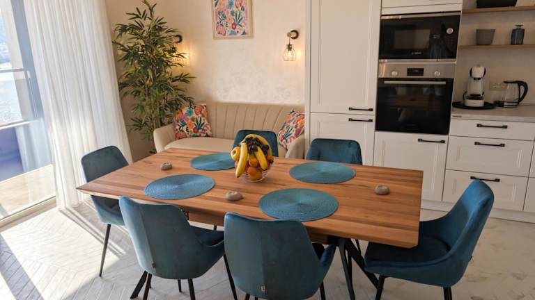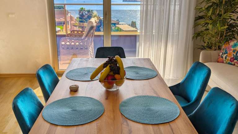 Lux Apartments Harmonia bietet attraktive Wohneinheiten mit kostenlosem Wifi, Klimaanlage und einem eigenen Garten. Die Unterkunft verfügt über eine Terrasse mit Meerblick sowie einen Sitzbereich und einen TV. Die voll ausgestattete Küche ist mit Kühlschrank und Geschirrspüler ausgestattet, während die modernen Badezimmer Dusche und Haartrockner beinhalten. Zu jeder Wohneinheit gehört ein Balkon mit Blick auf die Berge.