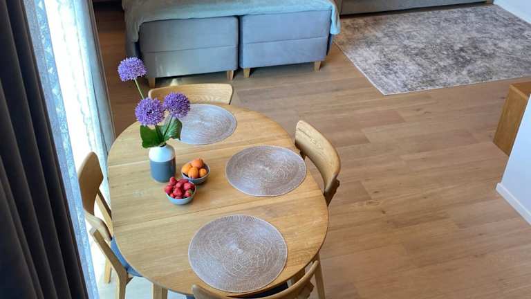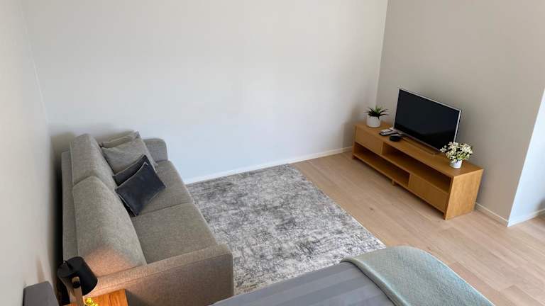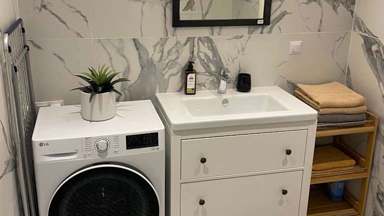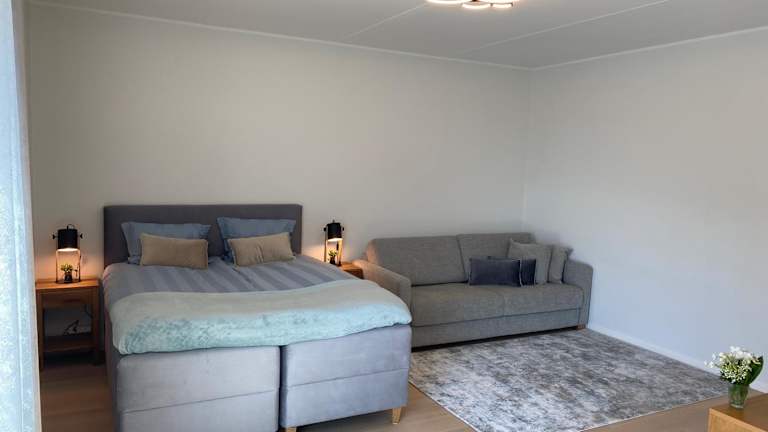 Die Ferienwohnung verfügt über ein Schlafzimmer, einen Flachbild-TV mit Kabelkanälen, eine gut ausgestattete Küche mit Kühlschrank und Geschirrspüler sowie ein Badezimmer mit Dusche. Handtücher und Bettwäsche werden bereitgestellt.